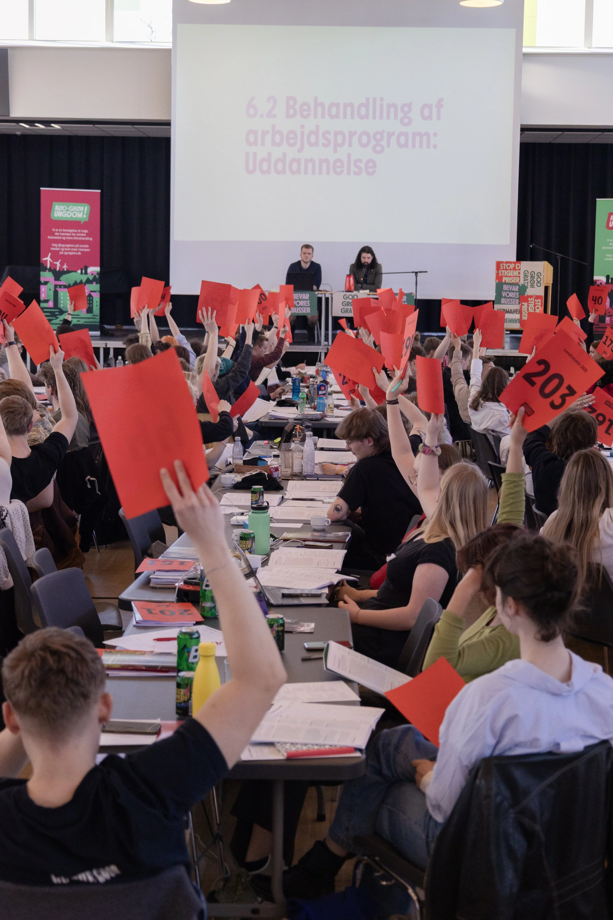 I Rød-Grøn Ungdom varer landsmødet en weekend, hvor vi deler dagene ind i fredag med tilbageblik på året der er gået, lørdag med fokus på vores politiske standpunkter og søndag hvor vi lægger planer for det kommende år.